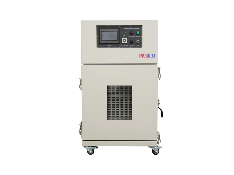 The thermal abuse test is mainly used in cells, modules, and battery packs. The temperature range of our standard battery thermal abuse test chamber is RT+10 ~ 200 degrees Celsius, and the heating rate is non-linear no-load ( 5 ± 2 ) degrees Celsius. The internal dimension of the heating test chamber and the thickness of the metal sheet are based on the volume and capacity of the test sample. You are required to advise the details of your samples before quoting so as to facilitate us in proposing a suitable model.