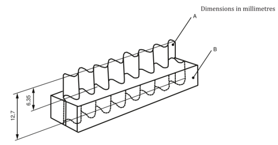 It is with a profile matching the profile of the corrugated medium, able to hold the specimen so that the flutes are vertical. The holder can be opened for mounting of test pieces. A suitable stopping surface exists so that 6.35 mm width of the specimen is grasped by the holder.